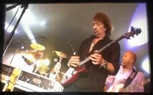 Jeff onstage with the League or Rock in Hawaii. (Steve Cropper & Alice Cooper. Ritchie Sambora, Ritchie Canata, Johnny Rosch). Date unknown. Photos by Michael White.